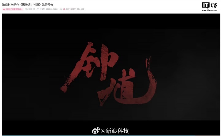 据官方透露,超 200 万玩家在B站通宵观看科隆展开幕夜直播,见证黑神话钟馗首曝,先导片视频上线 8 小时播放量破 700 万。截至发文,该视频在B站的播放量已经突破 1000 万,并登顶全站排行榜单第一。