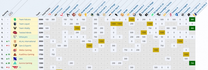 两个格斗项目一冠一亚,1750个俱乐部积分,帮助KSG跻身本届EWC前十(暂列第九)。