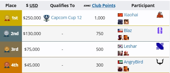 《街头霸王6》冠军,25w美元奖金+1000俱乐部积分;