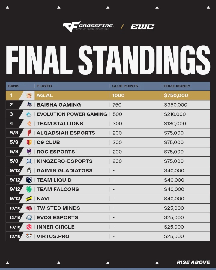 DOO选手获得赛事MVP荣誉,STS、白鲨、EP战队的队标被选为冠军底座。