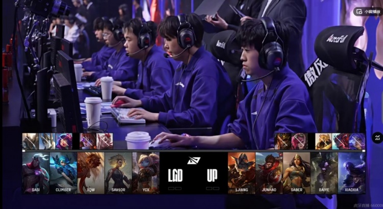 UP:上单1Jiang、打野Junhao、中单Saber、下路Baiye、辅助Xiaoxia