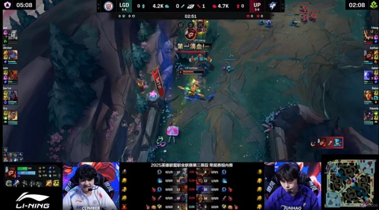直播吧8月25日讯 2025年LPL第三赛段常规赛进入收官,今天的首场比赛是涅槃组的LGD对阵UP!