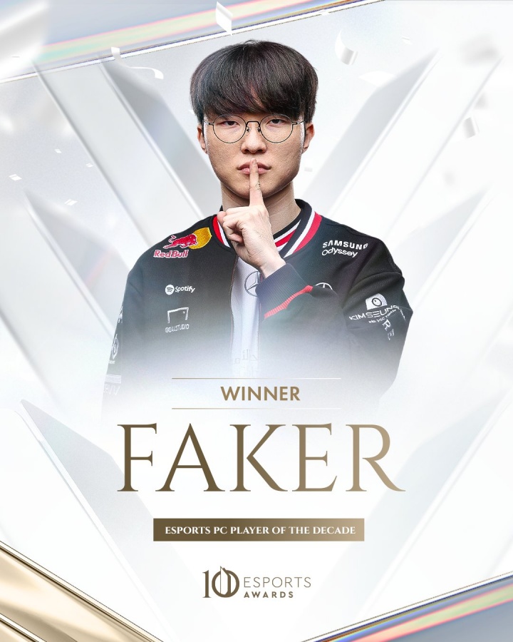 直播吧08月25日讯 Esports Awards全球电竞大奖公布了近10年电竞人物奖项评选结果,《英雄联盟》传奇选手Faker荣获10年最佳。