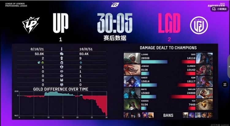 直播吧8月25日讯 2025年LPL第三赛段常规赛进入收官,今天的首场比赛是涅槃组的LGD对阵UP!