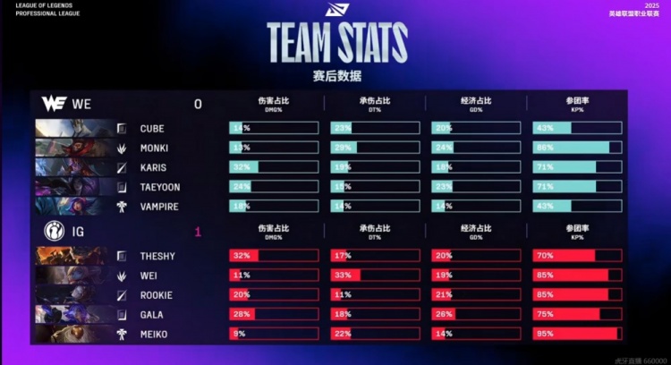 iG:上单TheShy、打野Wei、中单Rookie、下路GALA、辅助Meiko