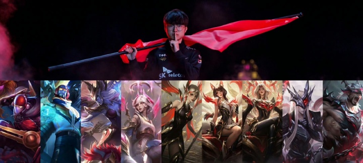 直播吧08月27日讯 S14冠军皮肤已经公布,就此LOL传奇选手Faker在游戏中的皮肤数量已经来到9款。