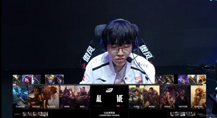 WE:上单Cube、打野Monki、中单Karis、下路Taeyoon、辅助Vampire