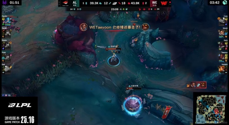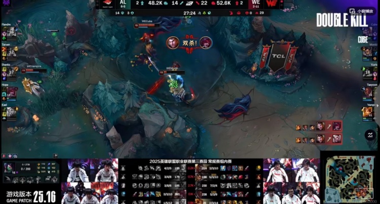直播吧8月27日讯 2025年LPL第三赛段常规赛进入收官,今天的首第二场比赛将是WE对阵AL!
