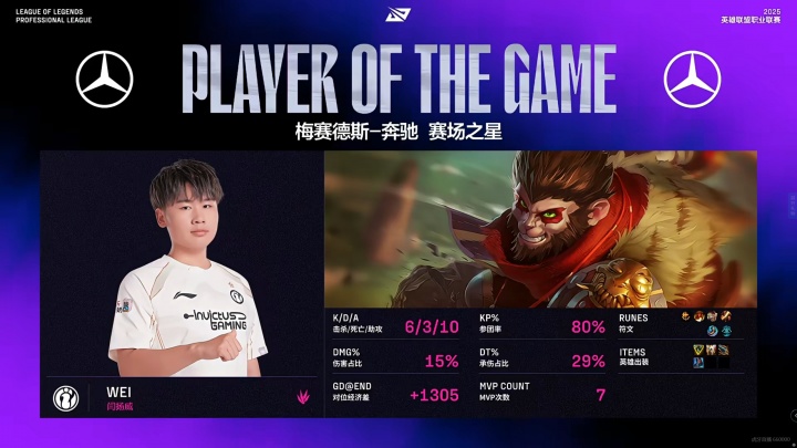 >闪现开团毁灭BLG!Wei猴子6-3-10 斩获首局MVP