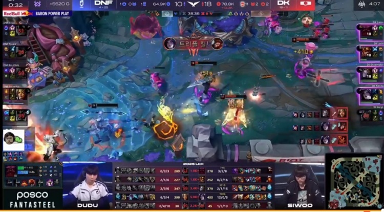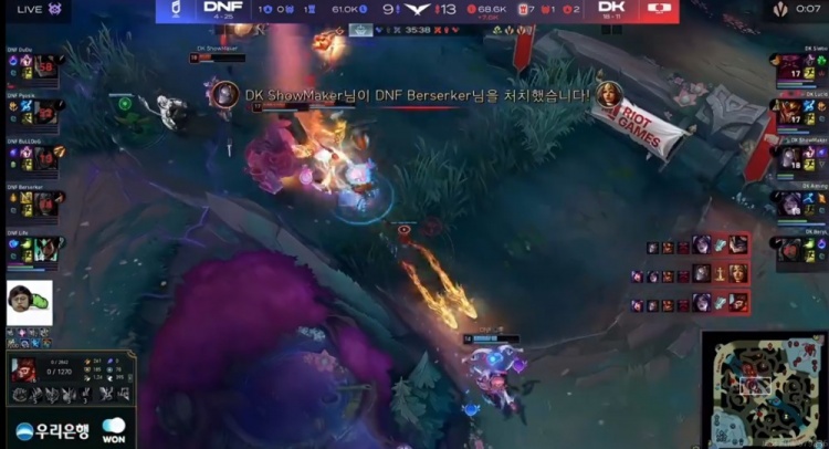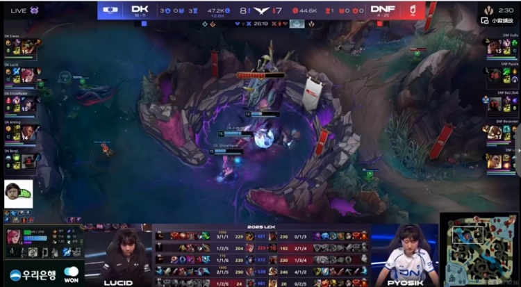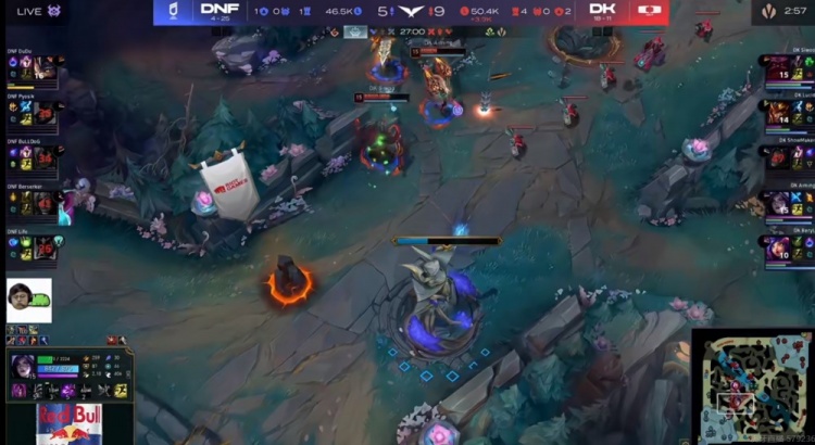 【17分钟】DNF上路四人越塔强杀掉了Lucid赵信+ShowMaker安妮!这波0换2之后DNF领先3K经济!