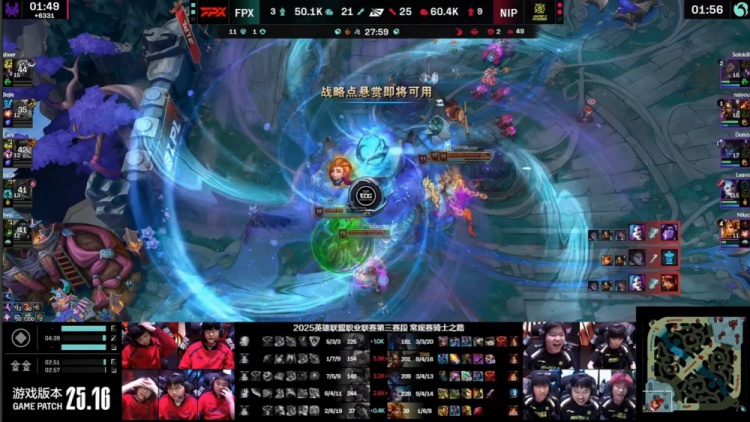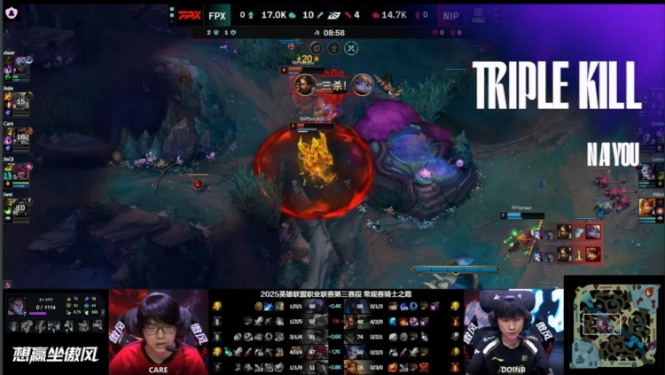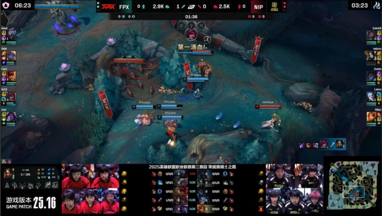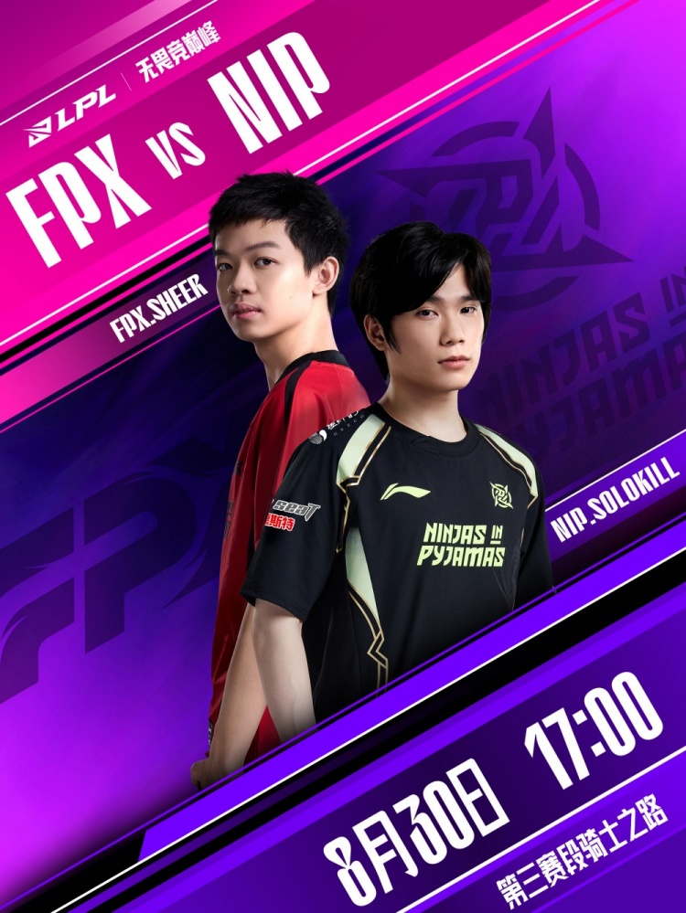 直播吧8月30日讯 2025LPL第三赛段来到骑士之路阶段,最终双方鏖战至决胜局,NIP3-2淘汰FPX!