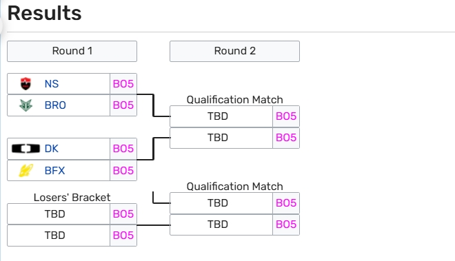 根据规则BRO和NS将在LCK入围赛首轮交手,通过双败赛制决出两个LCK季后赛名额。