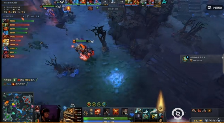 【23分钟】肉山团,XG先手集火击杀Mira莱恩,随后kiyotaka火猫吃到萨尔大白给,XinQ毒狗一关保护住残血Xxs马尔斯,Ame拍拍熊切入解决掉了Nightfall先知!这波XG击杀对手双大哥!经济反超3K!