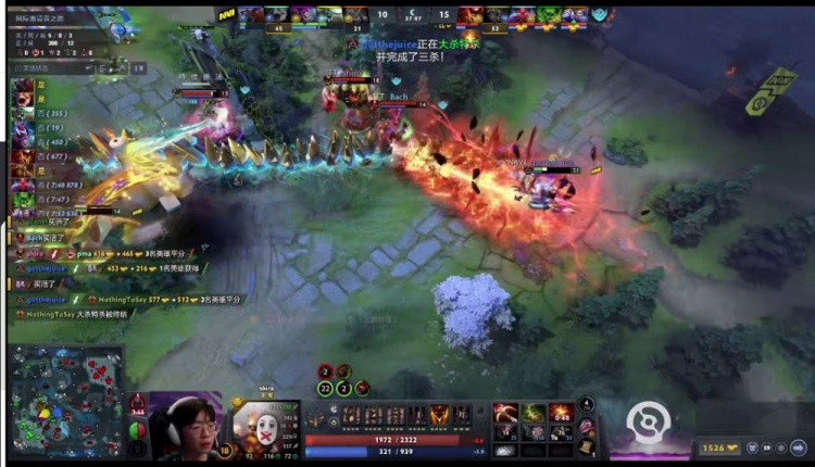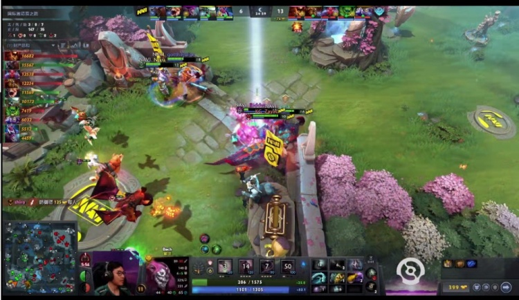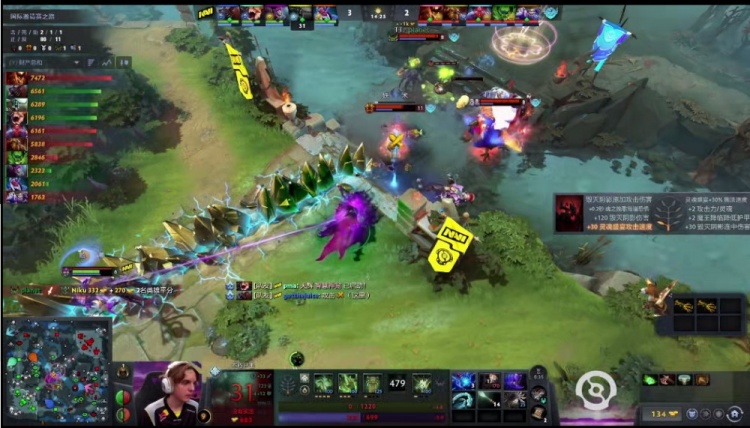 【24分钟】shiro影魔带盾带队下路推上高地,Navi冲出来动手,NTS撼地者被捉住,不过新鲜到手的盘子救了一下,活了下来,反而是Navi众人被Bach痛苦女王一个大招全部退回泉水,影魔无压力拆掉了下路高地。