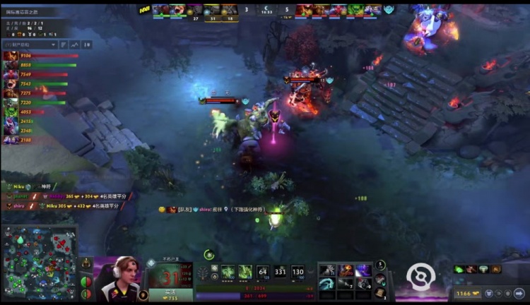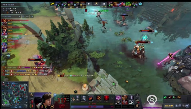 【32分钟】gotthejuice熊战士带队捉了shiro影魔落单,影魔吃了熊战士和pma兽两套爆发以后倒地,眼看熊战士要控二代肉,Bach痛苦女王A杖毒镖加大招过来让熊战士瞬间残血,Navi将技能都交在救熊战士身上,其他被NTS撼地者沟壑大招清场,Navi被打一波五人阵亡,Tidebound推掉了上路兵营,放出超级兵。