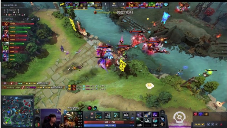 【14分钟】Tidebound开雾,NTS撼地者跳刀大招一套爆发,撇和队友直接中路秒了Niku尸王,Riddys戴泽薄葬抬手放不出去,只能回头反开雾,可未能捉到人。