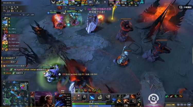 【36分钟】XG再拿肉山!Ame斯温带盾!随后Ame斯温连续砍出暴击,先后配合队友秒掉了Nightfall虚空+kiyotaka紫猫!Mira小Y还买活了!这波XG击杀Aurora四人,拆掉上路高地!21K经济差了!