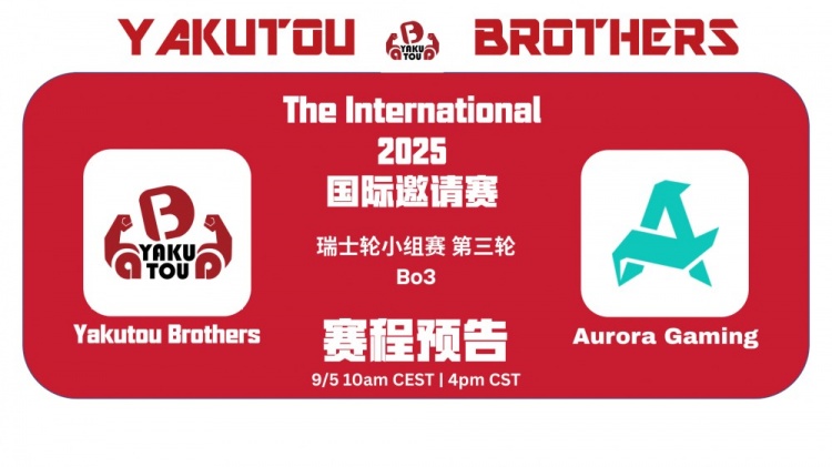 直播吧9月5日讯 TI2025今天瑞士轮今天继续进行!中国战队YB在1-1组的对手将会是Aurora!