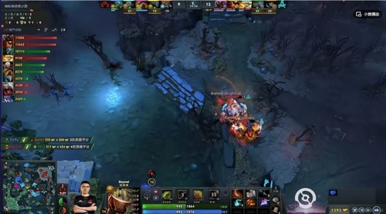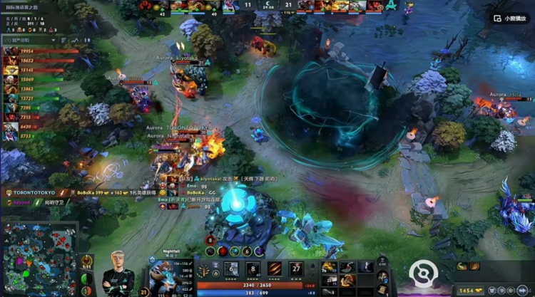 【19分钟】Aurora抱团拿下肉山,Emo卡尔吹风可惜没能抢到肉山!YB强杀掉了带盾的Nightfall拍拍,但是正面kiyotaka影魔人群里摇大拉满了AOE伤害!flyfly蚂蚁+Beyond钢背强行留住对手双酱油,但还是Aurora的2换3!