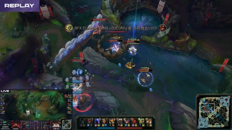 【8:18】巢虫团,GIDEON皇子火锅河道扣两人但被Lehends巴德金住,金身结束,Kingen与GIDEON双双阵亡,BFX打出0换2,回头吃掉三条巢虫。