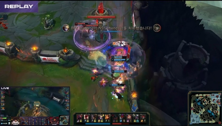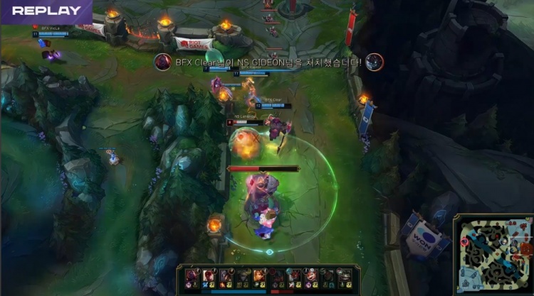 后期BFX控下听牌土龙,随后Vicla卡牌与Clear赛恩配合下路击杀NS野辅,BFX再转大龙,经济优势来到1w以上。最终BFX上路推进击杀NS下路双人组,一波推平NS基地赢得比赛胜利。