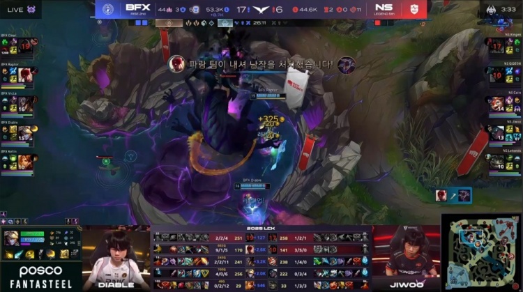 第三局:🎮无限反转!Jiwoo卡莎三度轰三杀 BFX翻中翻被翻 NS扳回一城