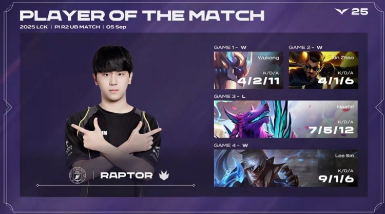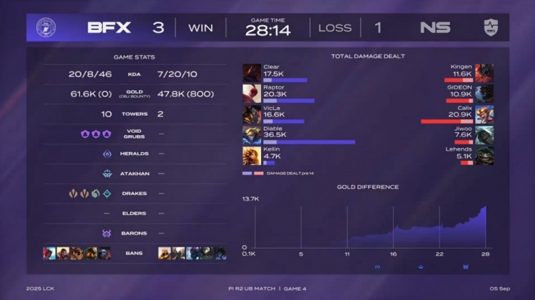 直播吧9月5日讯 2025年LCK来到季后赛入围赛继续进行,最终BFX3-1战胜NS,成功晋级LCK季后赛!