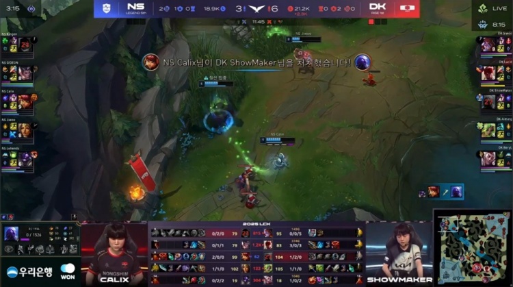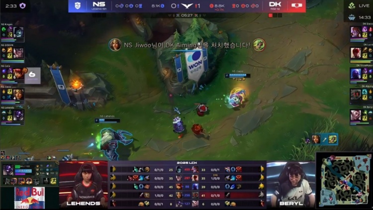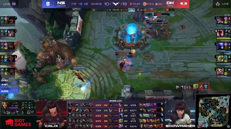 后期双方多次在野区爆发团战,Lehends牛头与Lucid盲僧互换后,DK凭借大龙和土龙魂进一步拉开经济差距。最终,Lucid盲僧踢飞Calix安妮,NS双C瞬间倒下,DK直破高地推平NS基地拿到赛点。