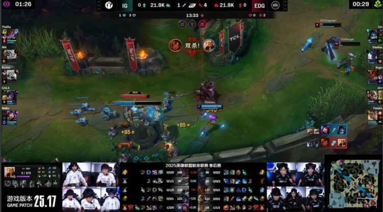 直播吧9月7日讯 2025LPL季后赛继续进行,今日第二场焦点之战由iG对阵EDG!