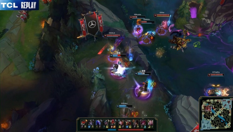 【20:59】EDG来开厄塔汗,xiaohao塞拉斯挂E被Meiko挡住,GALA开大规避伤害,Rookie卡牌找到机会击杀xiaohao,Wei劫再切Angel瑞兹,Rookie再杀Parukia泰坦拿到双杀,GALA残血向前输出击杀Ahn,iG打出1换5团灭EDG,回头吃掉厄塔汗,经济领先4k。