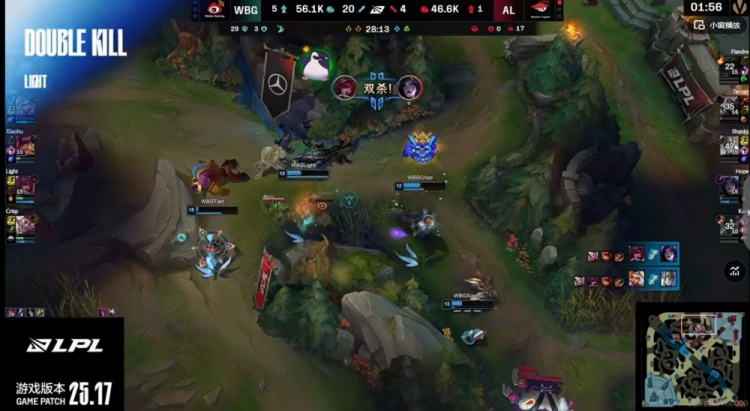 【11:02】中路WBG再次找到机会,野辅配合秒掉了Tarzan劫!WBG拿到战斗先机!