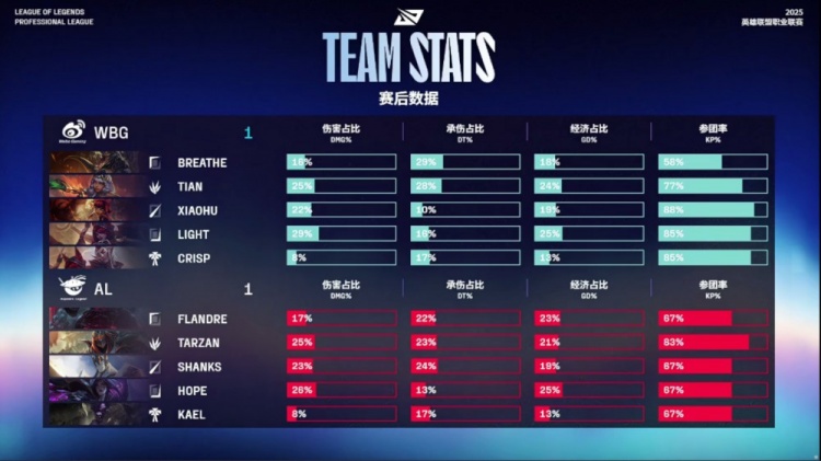 WBG:上单Breathe、打野Tian、中单Xiaohu、下路Light、辅助Crisp