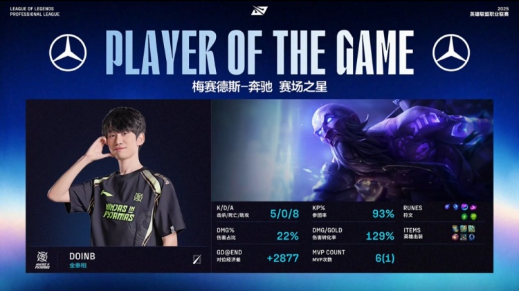 第一局:🎮Doinb赛恩是没后视镜的 Kanavi奇亚娜是毁天灭地的 TES赢首局