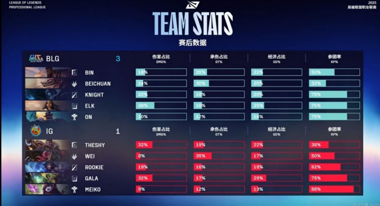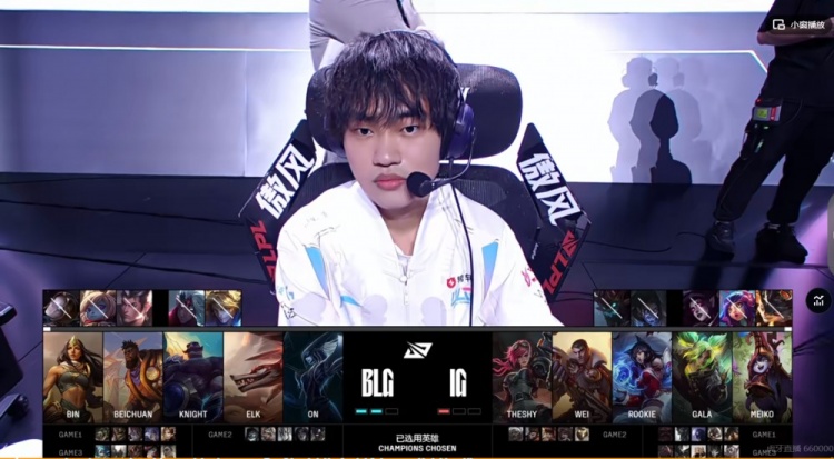 BLG:上单Bin、打野Beichuan、中单knight、下路Elk、辅助ON