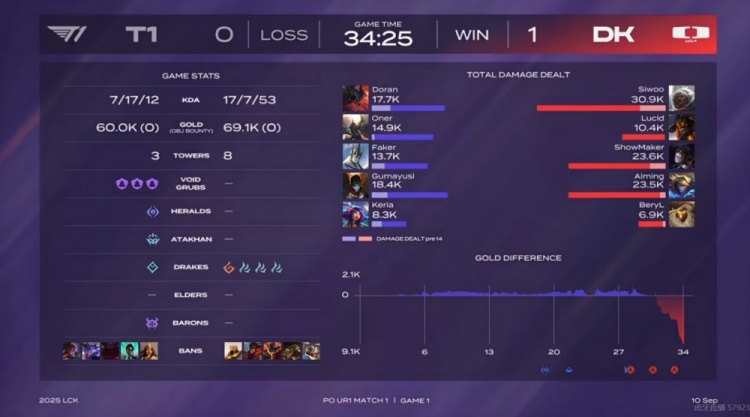 直播吧9月10日讯 2025年LCK正式进入季后赛阶段!今天是首场的季后赛对局,T1对阵DK!