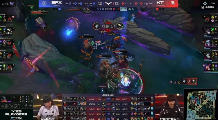 直播吧9月11日讯 2025年LCK来到季后赛阶段,今天是首轮的第二场,KT将要和BFX展开对决!
