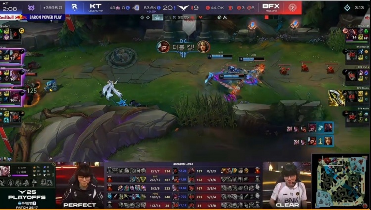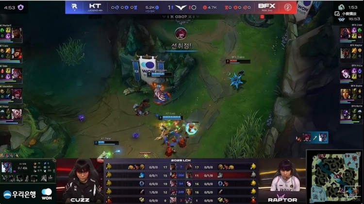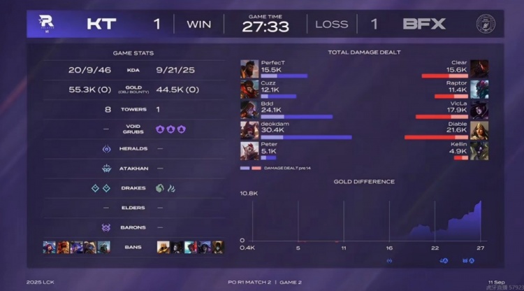 直播吧9月11日讯 2025年LCK来到季后赛阶段,今天是首轮的第二场,KT将要和BFX展开对决!