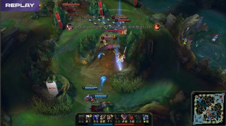【12:18】Raptor赵信带队冲进KT下半野区逮捕Peter女坦,后者战绩来到0-3-0。