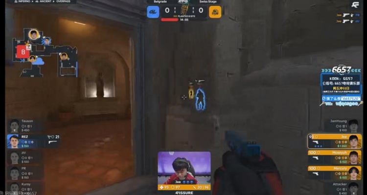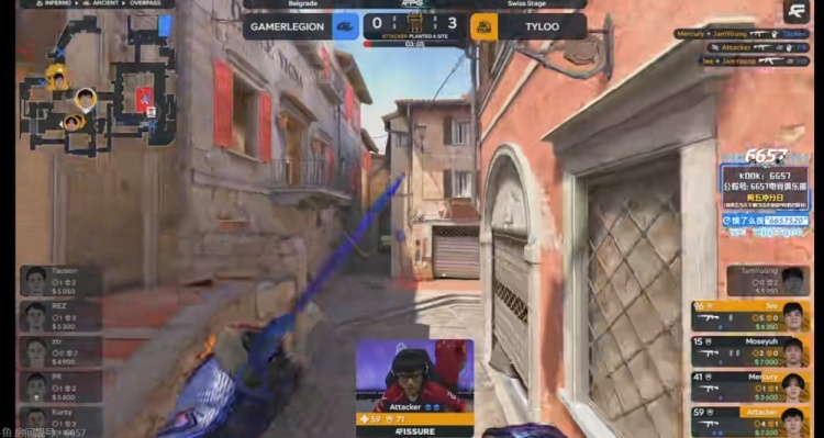 最后一局TYLOO迟迟不丢CT烟让Kursy大狙拿下击杀,TYLOO在B区下包但是人数劣势!不过好歹PR从香蕉道绕后终于赶到,GL一波2换3赢下残局!上半场最终比分9-3!