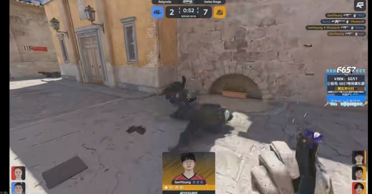 第三局GL选择钢枪,但是JamYoung贴墙一把AK配合队友闪光顿时四杀清屏!TYLOO轻松拿下赛点!12-3!