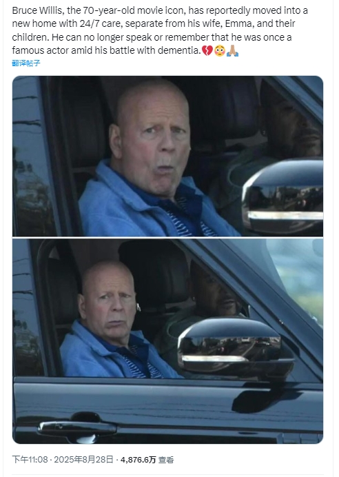 硬汉迟暮!著名影星布鲁斯威利斯因老年痴呆与家人分离接受专业护理 已记不起自己是影星