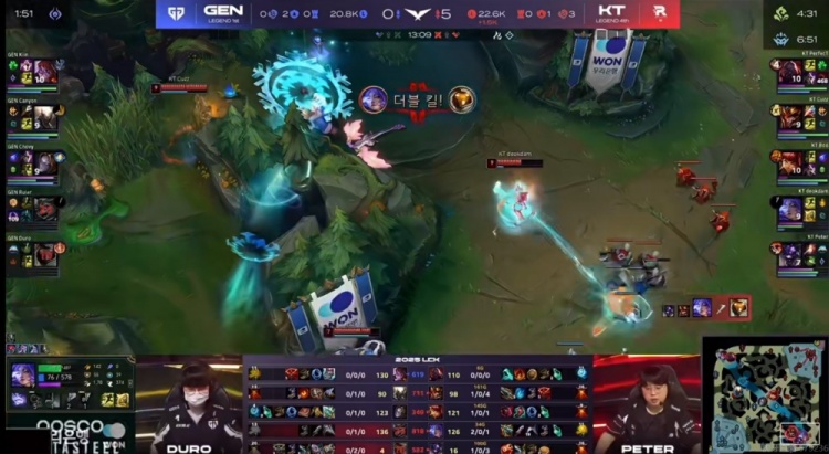 GEN:上单Kiin、打野Canyon、中单Chovy、下路Ruler、辅助Duro
