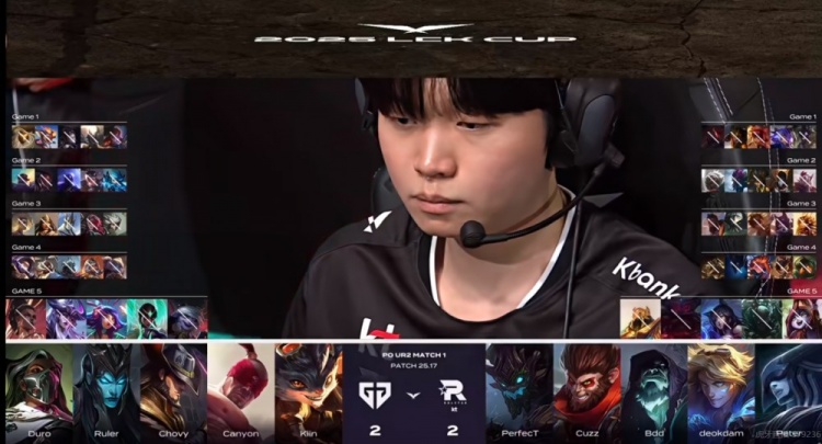 GEN:上单Kiin、打野Canyon、中单Chovy、下路Ruler、辅助Duro