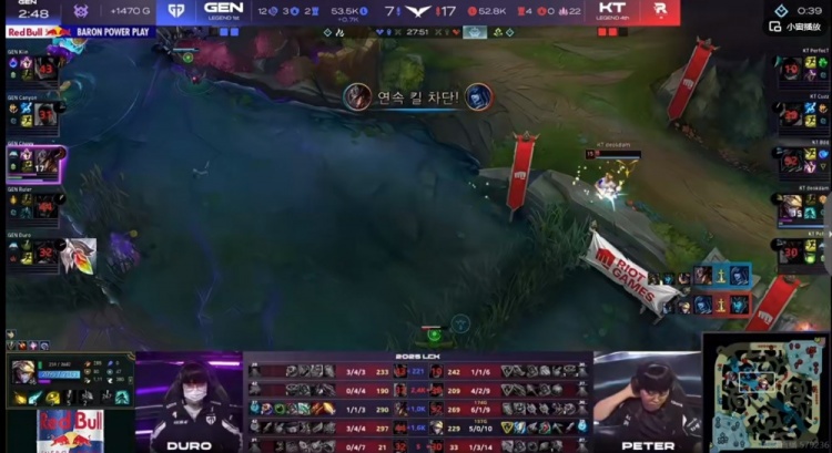 【15:40】KT拿下峡谷先锋,GEN则是让Kiin兰博换了个下一塔!3K经济差!