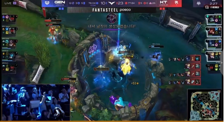 【40:50】远古龙团,Chovy卡牌团前被约里克抓到被迫交闪,KT抱团先占位置,Canyon盲僧传送门绕后直接绕到了Bdd丽桑卓脸上啊!虽然自己带着复活甲+队友率先秒了Peter大树,但是打野倒下双方纠缠中远古龙残血被Deokdam伊泽瑞尔抢到了!局势已定!KT团灭GEN结束比赛!晋级胜决的同时保底前三种子!这样HLE/T1/DK的其中一个将大概率不得不成为LCK的四号种子!