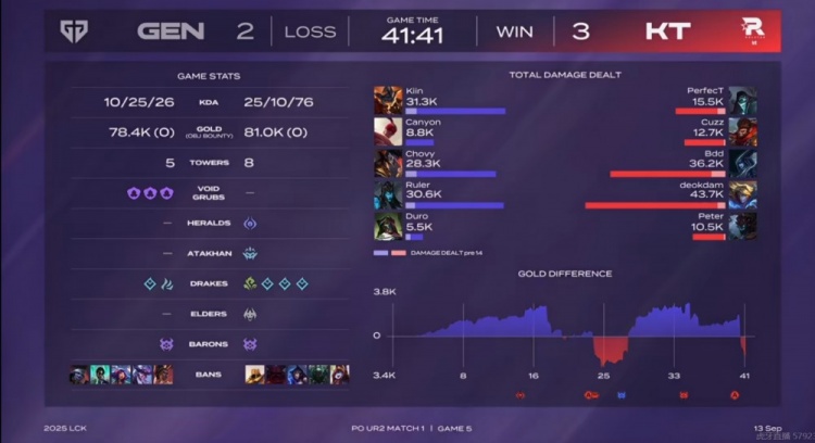 直播吧9月13日讯 2025年LCK来到季后赛阶段,今天是胜者组第二轮的比赛,GEN对阵自己挑选的KT!