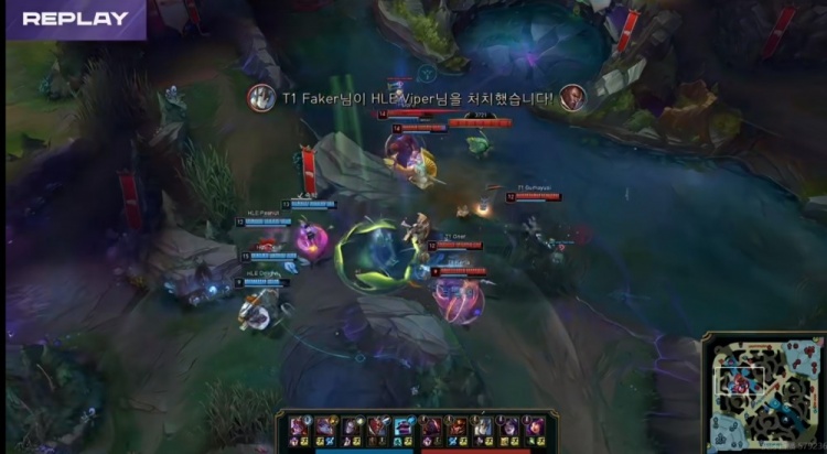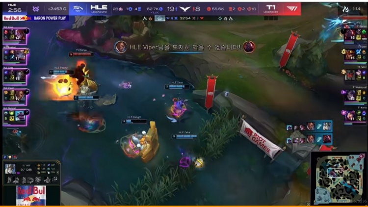 【22:50】河道遭遇,T1交出三个大招强杀掉了Viper卢锡安,回头拿下听牌龙!