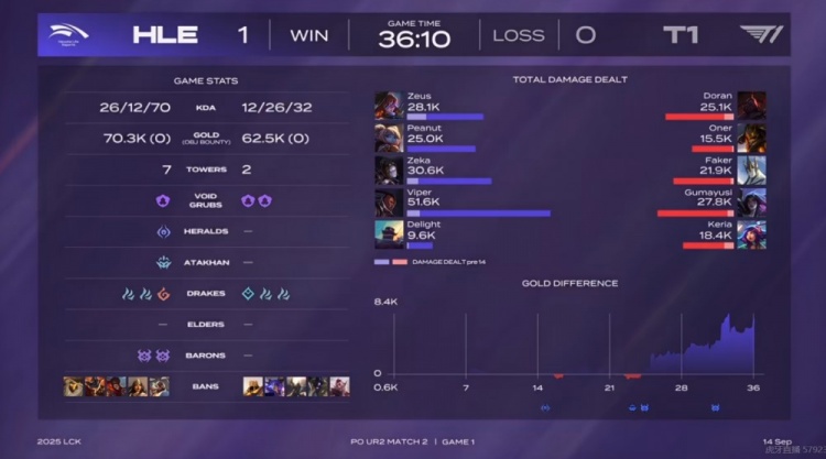 直播吧9月14日讯 2025年LCK来到季后赛阶段,今天是胜者组第二轮的比赛,T1对阵HLE!