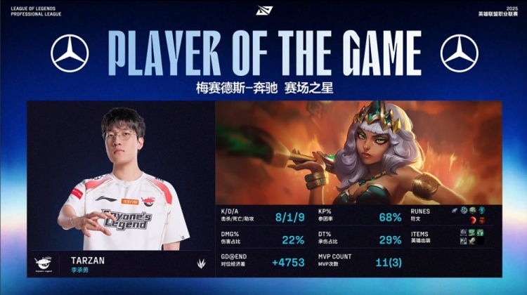 第一局Wei皇子对阵Tarzan奇亚娜。开场不久Tarzan奇亚娜下路绕后,GALA与Meiko在河道被前后包夹送出人头。河道团战Tarzan奇亚娜推iG两人,AL瞬间打出0换3,经济领先3k。