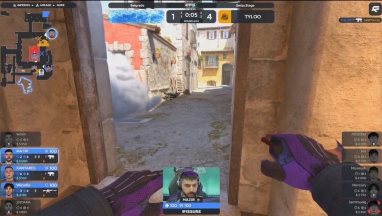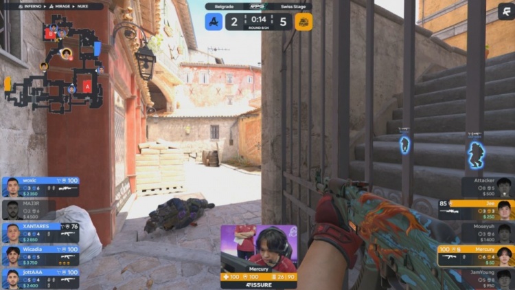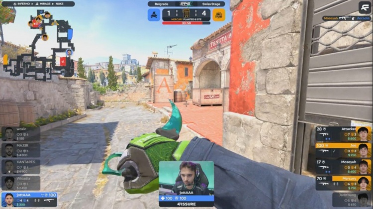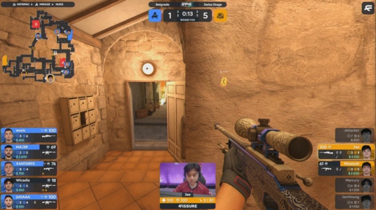 第3局香蕉道jottaaa英雄加利尔双杀后被Jee反杀,狠人来A二楼沙鹰一发带走Moseyuh,Jee随后进B双杀,单局三杀,Mercury双杀收割残局,Aurora0-3Tyloo。
